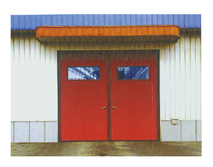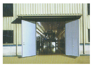 该门为电动双向或单向平开方式,门框采用型钢或不锈钢硬质铝型材等制造, 门体选用保温型夹心彩钢板或普通型夹心板,用户可根据需要选用不锈钢面板或其他花色面板,门体可设计多种款式采光窗和方便通行的门中门。