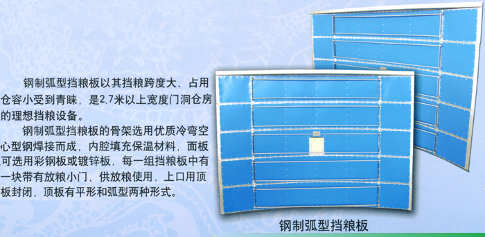钢制弧型(三角型)挡粮门是我公司根据国家新建粮库的设计要求而制作,它具有使用方便 、开启灵活、结构紧凑、完整合理、性能可靠、承受压力大、维修方便等特点。且设有插板式紧急出粮口。