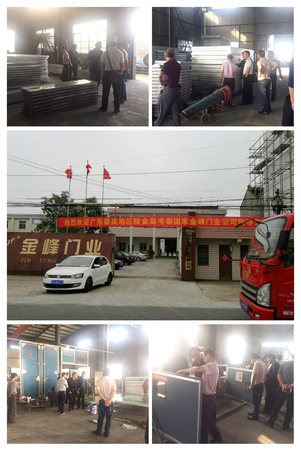 2017年5月5日下午,广东肇庆地区粮食局考察团来我司指导工作。在总经理和副总经理的带领下,考察团成员参观了我司办公室及生产车间工作状态,观看了门窗制作有关步骤。在样品存放区,考察团仔细研究了粮库密闭门、窗、挡粮门、通风口等样品,并对我司制作的新式粮库门窗等产生了浓厚的兴趣,在技术员的讲解下对新式门窗和老式门窗做了详细了解,对我司为用户着想的观念给予肯定。考察团一行对我司的工作态度及产品质量给予了高度评价,双方对今后的合作有了更多的信心。